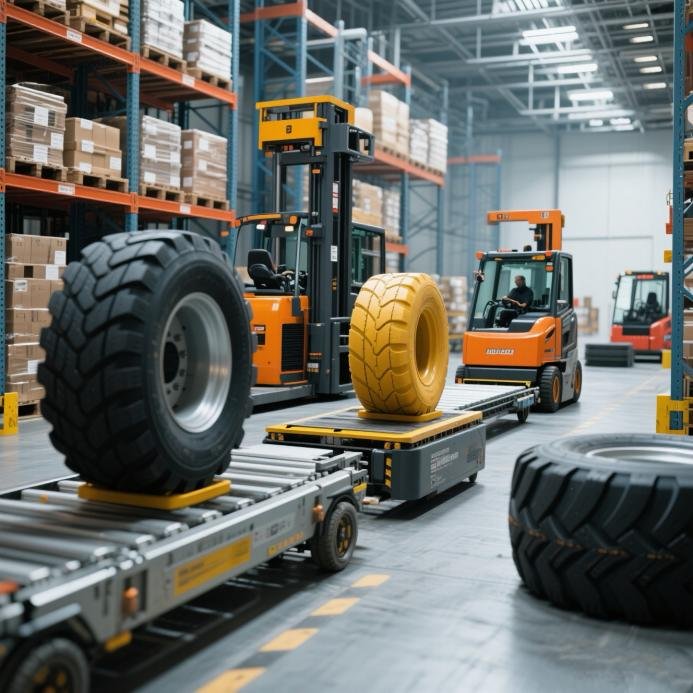 Наша линейка промышленных шин включает в себя различные составы (такие как полиуретановые, цельнолитые и пневматические), которые гарантируют бесшумную, гибкую и эффективную работу вашего оборудования для обработки грузов, обеспечивая высокую мощность для современных интеллектуальных складов.